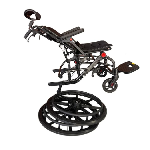 con una silla de ruedas especializada